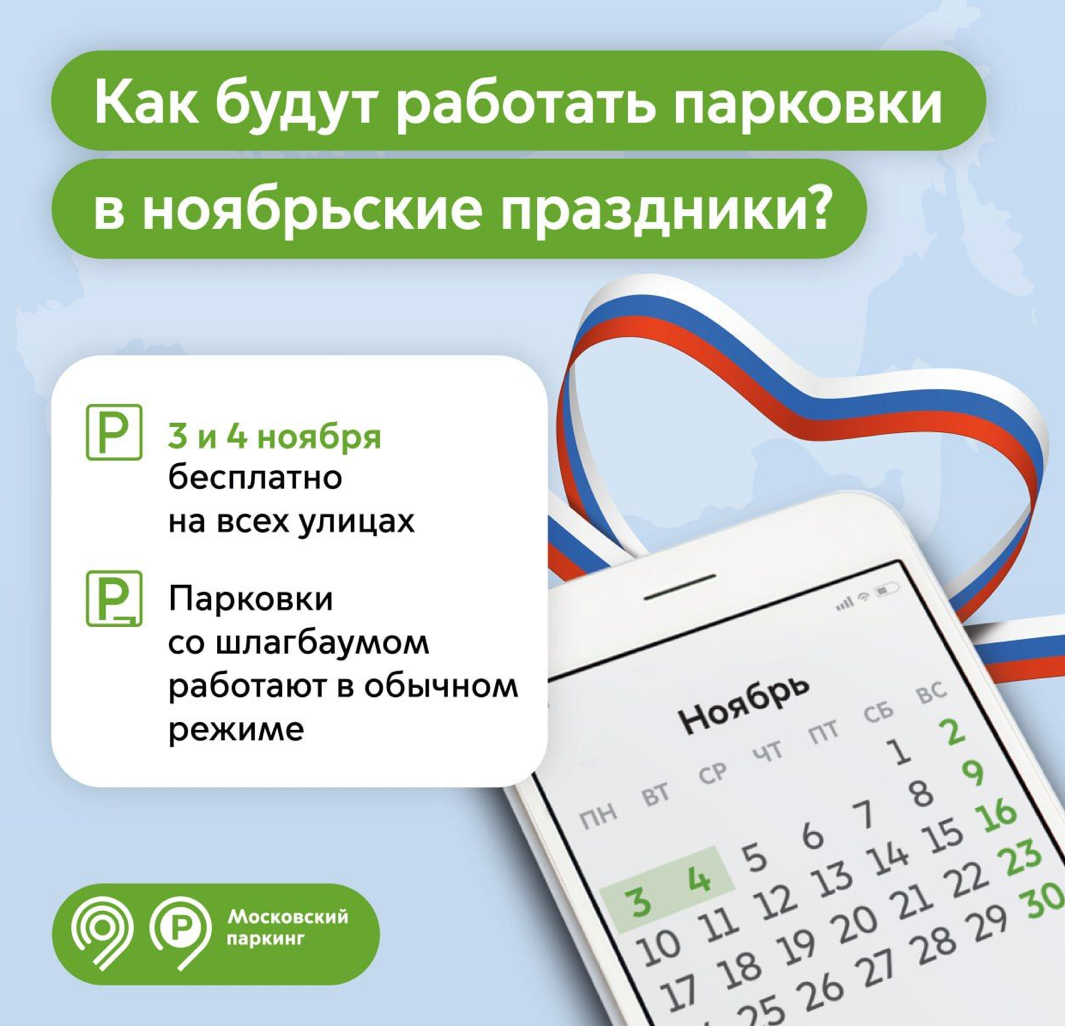 В эти два дня можно смело оставлять машину в разрешенных местах, не беспокоясь об оплате. Парковки со шлагбаумом продолжат работать в обычном режиме. #парковкаМосква #Москва #бесплатнаяпарковка #ДеньНародногоЕдинства #новостиМосквы #автовладельцам