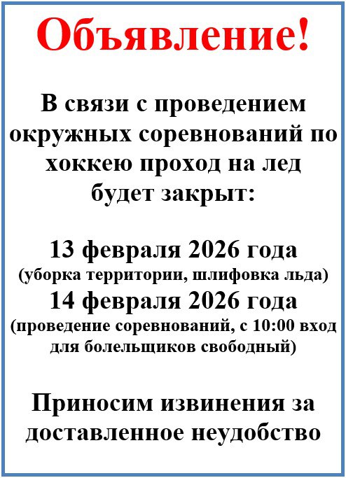 Важная информация о работе катка!⛸ Важная информация о работе катка! Уважаемые жители! Временное изменение в расписании работы катка, расположенном по адресу: ул. Уткина, вл 41Б. 13 февраля (пятница) Каток не будет доступен для свободного посещения — в этот день ведутся работы по уборке и шлифовке льда перед турниром, в связи с эти доступ на лед будет ограничен. 14 февраля (суббота) День соревнований. Вход для зрителей и болельщиков свободный с 10:00. Все мероприятия проекта «Зима в Москве» продолжаются по расписанию. ❄️ #ВАО #Соколинаягора #Каток #Досуг #Соревнования