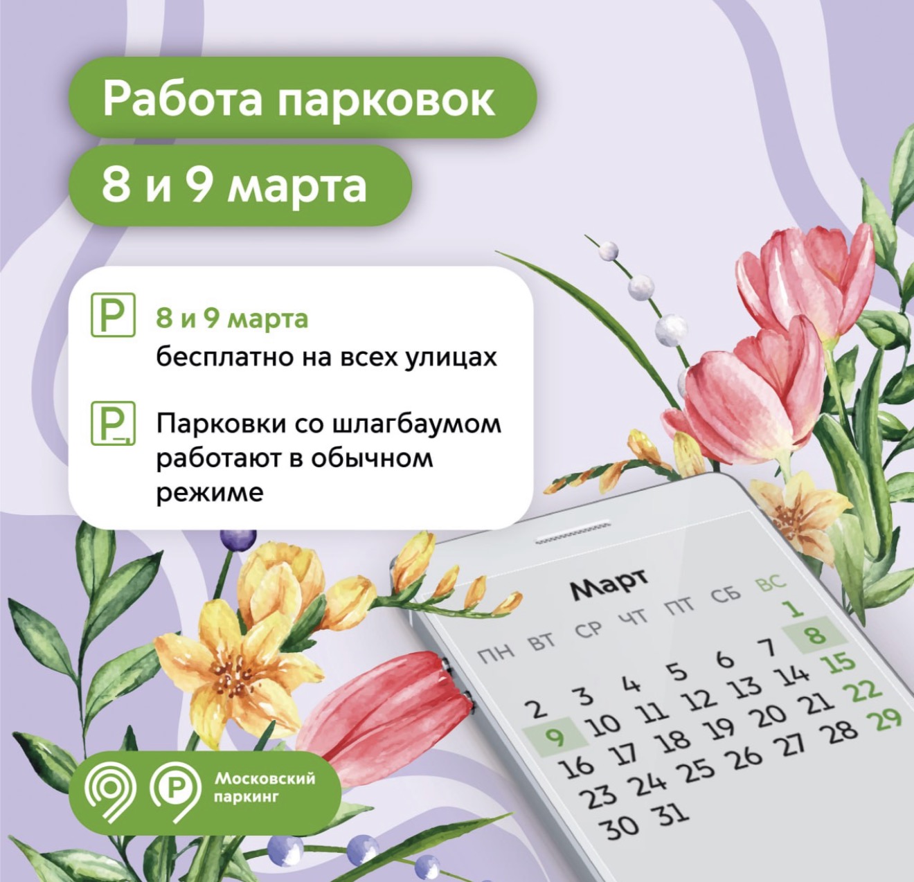 8 и 9 марта парковки в Москве станут бесплатными для всех!
