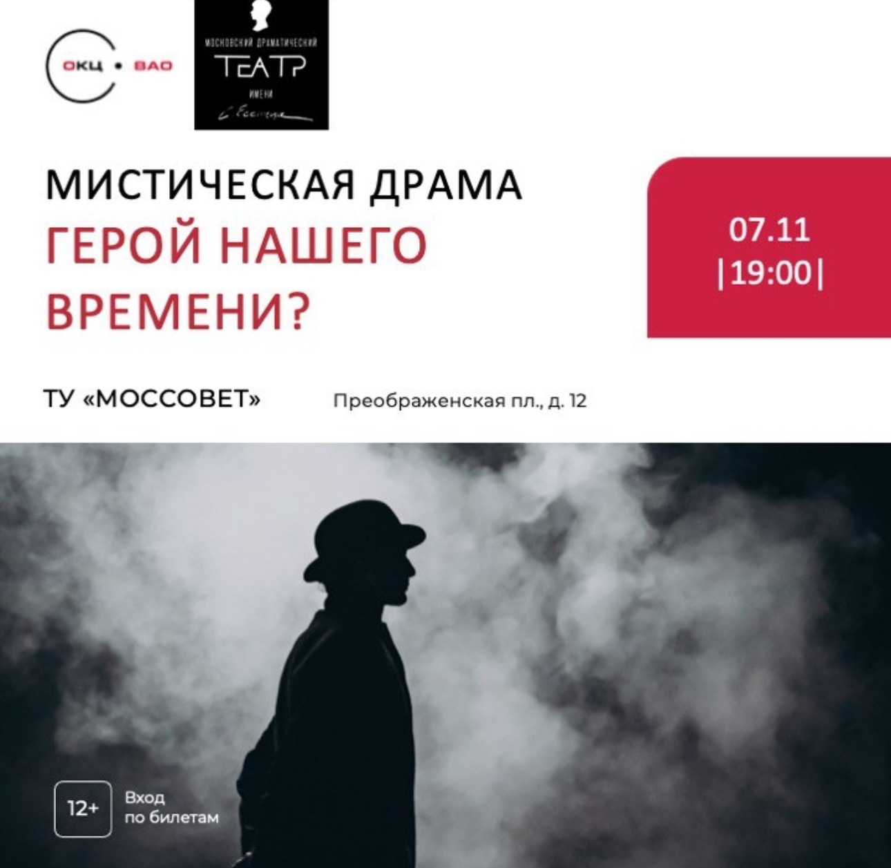 7 ноября в 19:00 ТУ «Моссовет» и Московский Драматический театр им. Сергея Есенина приглашает на мистическую драму «Герой Нашего Времени?»7 ноября в 19:00 ТУ "Моссовет" и Московский Драматический театр им. Сергея Есенина приглашает на мистическую драму «Герой Нашего Времени?» по мотивам знаменитого романа Лермонтова. ❓ Почему в названии есть знак вопроса? Спектакль задает неудобные вопросы, на которые у каждого свой ответ: Кто на самом деле главный герой – Печорин или само Время, которое играет людьми? Как чужая воля подчиняет нас? Встречаем ли мы этих персонажей в своей жизни? 🔥 В основе постановки – ключевые главы романа: «Бэла», «Княжна Мэри» и «Фаталист». 📍 Преображенская пл., 12 🎭 Возраст: 12+ ⏱ Продолжительность: 3 часа 30 минут (с антрактом) Не упустите шанс увидеть классику в новом, мистическом свете! ▶️ КУПИТЬ БИЛЕТЫ: https://iframeab-pre8939.intickets.ru/event/67795155/?locale=ru_RU #Моссовет #ТеатрЕсенина #ГеройНашегоВремени #Лермонтов #СпектакльМосква