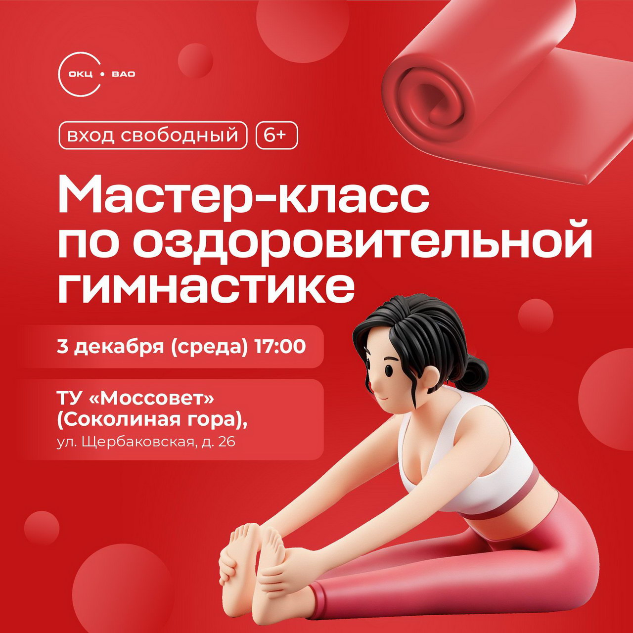 3 декабря в ТУ ООЦ им. Моссовета состоится открытый мастер-класс для всех, кто ценит заботу о здоровье!3 декабря в ТУ ООЦ им. Моссовета, расположенного по адресу: ул. Щербаковская д. 26, состоится открытый мастер-класс для всех, кто ценит заботу о здоровье. Это практическое мероприятие, где каждый найдёт комфортный ритм и полезные приёмы. В программе: ✅ Адаптированные упражнения от профессиональных инструкторов. ✅ Дыхательные и расслабляющие практики для любого уровня. ✅ Советы по укреплению организма и повышению энергии. ✅ Беседы о важности активного образа жизни. ✅ Экспертные презентации по реабилитации и питанию. 📍 Дата: 3 декабря (ср) в 17:00 📍 Адрес: ТУ «Моссовет» (Соколиная гора), ул. Щербаковская, д. 26 🎫 Вход свободный! #ВАО #Соколинаягора #Досуг #ТУООЦимМоссовета