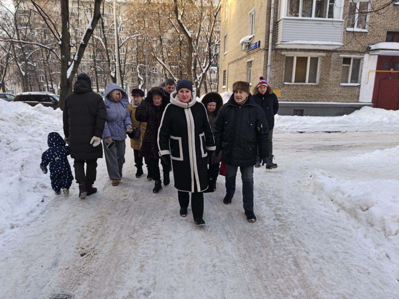 Глава муниципального округа Соколиная гора в городе Москве Инесса Юрманова приняла участие в традиционном обходе территорииГлава муниципального округа Соколиная гора в городе Москве Инесса Юрманова в субботу, 17 января, приняла участие в традиционном обходе территории по адресам: проспект Буденного, д. 39, к. 1; д.39, к. 2; д. 41. Обход провела глава управы района Соколиная гора Мария Кондратенкова. В обходе приняли участие: первый заместитель главы управы Александр Черняев, председатель общественных советников, жители района. Замечания жителей по содержанию дворовой территории отражены в протоколе. Особое внимание было уделено вопросам уборки территории от снега и его своевременному вывозу. По результатам обхода даны поручения ответственным сотрудникам и коммунальным службам района. Глава муниципального округа благодарит всех участников обхода! #УправаСоколинаягора #ВАО #Соколинаягора #Субботнийобход #Обход