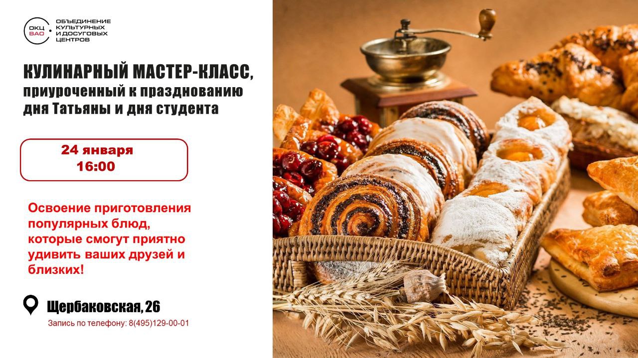 25 января — особенный день: мы отмечаем и День студента, и День Татьяны!Дорогие друзья! 25 января — особенный день: мы отмечаем и День студента, и День Татьяны! Что может быть лучше праздника, объединяющего веселье, друзей и… вкусную еду? 24 января в 16:00 ТУ Моссовет Соколиная гора приглашает вас на особенный кулинарный мастер-класс! Вы