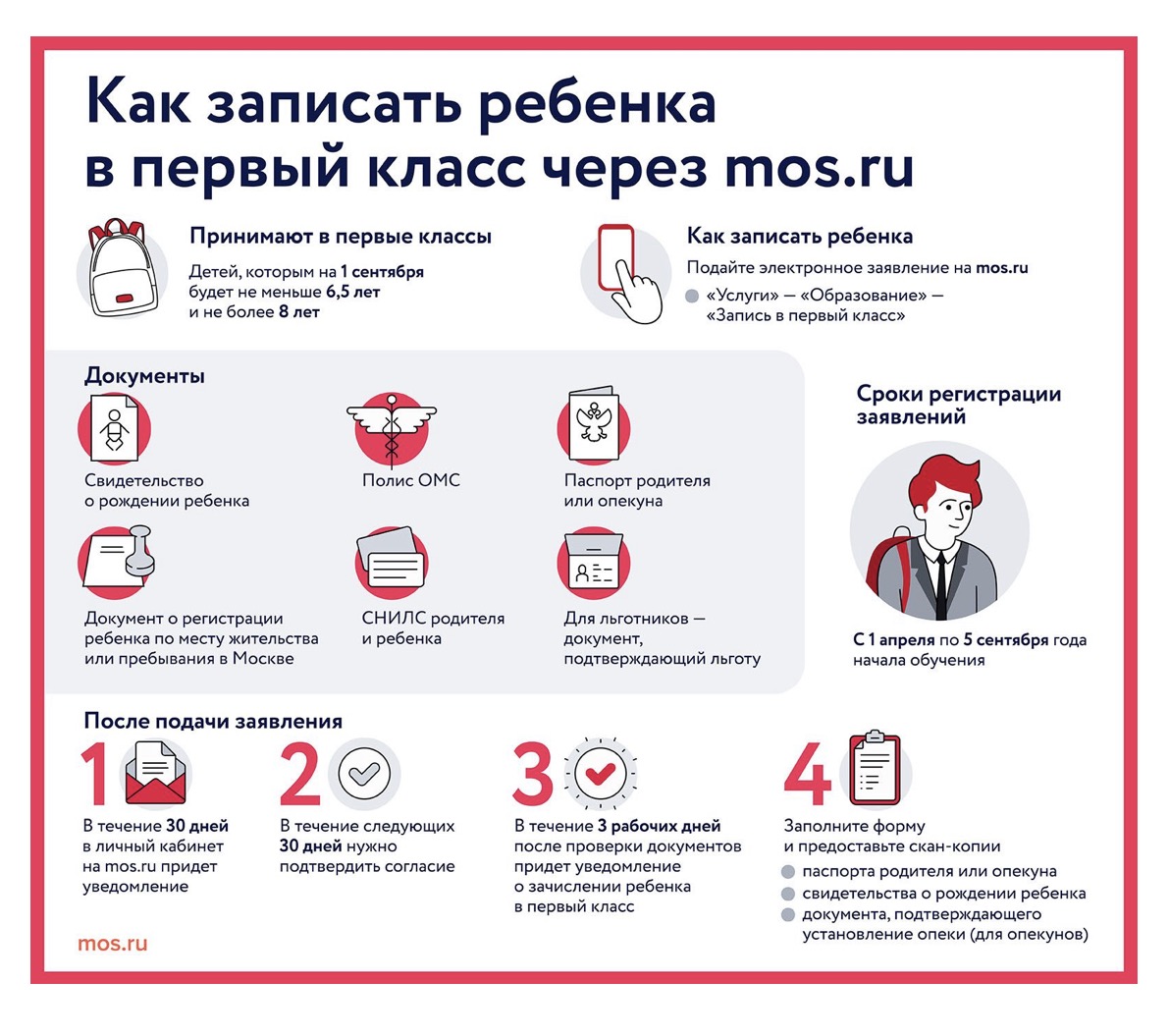 С 1 апреля на портале mos.ru стартовала запись в первый класс на 2026 год. Услуга стала ещё удобнее: ✅ Что нового: доработан дизайн и пошаговый процесс подачи заявления — всё легко и быстро. ✅ Сроки: с 1 апреля до 5 сентября 2026 года. ✅ Популярность услугой: более 933 тысяч раз воспользовались родители (данные Департамента информационных технологий). ✅ Выбор школы: в заявлении можно указать до трёх школ — одну по прописке, две любые другие. ✅ Что нужно для подачи: свидетельство о рождении, СНИЛС ребёнка и свой, паспорт заявителя и др. документы. ✅ Срок проверки: до 30 календарных дней после регистрации заявления. 📞 Вопросы: — Горячая линия: +7 495 530‑71‑71 — Email: infodo@edu.mos.ru Подробнее о нацпроектах: https://www.mos.ru/city/projects/national/ #ВАО #Соколинаягора #Зачислениевшколу #Mos.ru