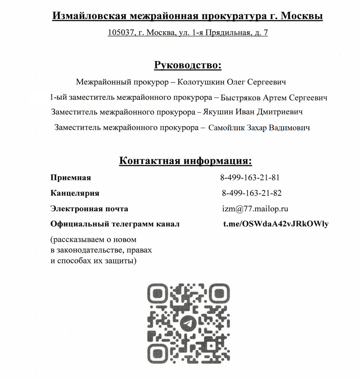 Заместителем межрайонного прокурора Иваном Якушиным, старшим помощником межрайонного прокурора Тамарой Ныровой и помощником межрайонного прокурора Дмитрием Березой в рамках совершенствования деятельности по формированию законопослушного поведения несовершеннолетних организовано посещение школьниками судебных заседаний. Ученики 8 и 10 классов ГБОУ г. Москвы «Школа самоопределения № 734 имени А.Н. Тубельского» посетили в Измайловском районном суде заседания по двум уголовным делам в сфере незаконного оборота наркотиков, по которым вынесены приговоры, а также уголовное дело о мошенничестве с применением дистанционных технологий, по которому предъявлено обвинение несовершеннолетнему лицу. После заседания работники прокуратуры ответили на все животрепещущие вопросы учеников, разъяснили нормы уголовного законодательства и напомнили об уголовной ответственности за совершение преступлений. Измайловской межрайонной прокуратурой утверждено обвинительное заключение в отношении ранее несудимого 25-летнего жителя г. Москвы. Он обвиняется в совершении преступления, предусмотренного п. «а» ч. 2 ст. 163 УК РФ (вымогательство). Установлено, что обвиняемый, имея умысел на вымогательство, то есть требование передачи чужого имущества под угрозой распространения сведений, которые могут причинить существенный вред правам и законным интересам потерпевшего, завладел денежными средствами принадлежащими потерпевшей. Уголовное дело направлено в Измайловский районный суд для рассмотрения по существу. Перед судом предстанет мужчина 73-летний житель города Москвы неоднократно судимый